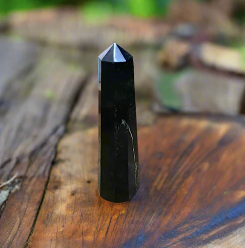 Handcrafted from authentic Black Tourmaline, each tower is a testament to the beauty of nature and the intense spiritual power of the stone. Black Tourmaline is renowned for its deep, rich black color and ability to absorb negative energy, providing a shield against harmful influences.